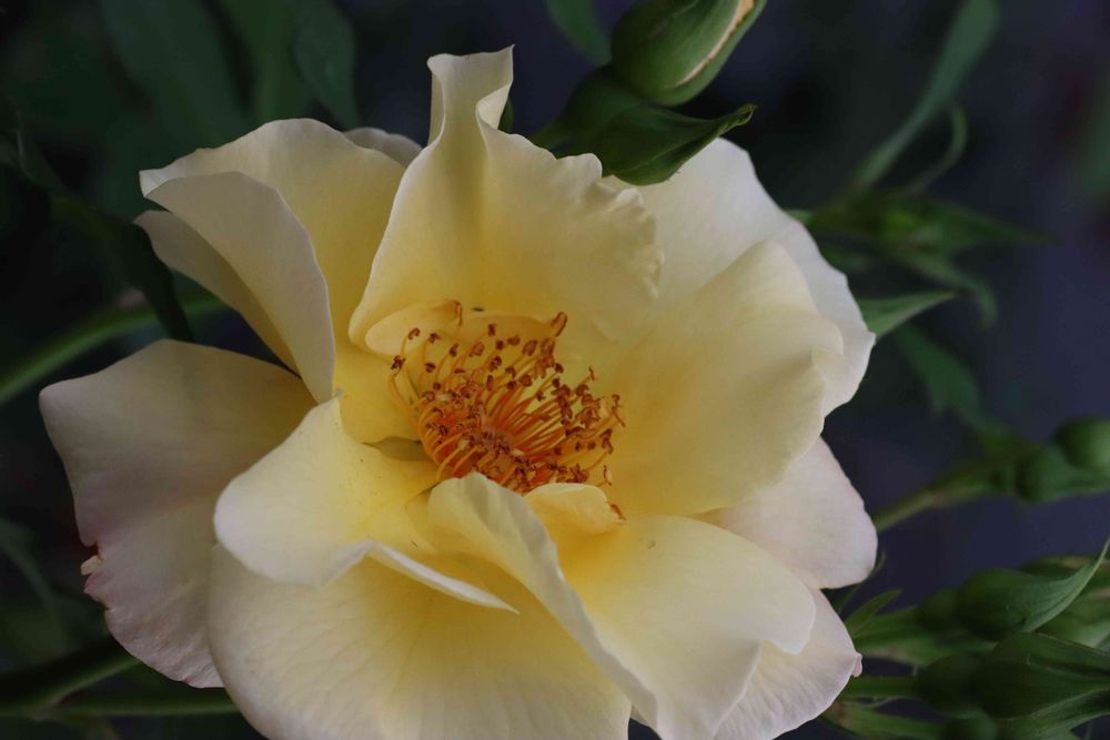 鉢植えのバラ キンレンポ(金蓮歩)が咲いています。開きかけの時と比べると少し黄色が淡くなっています。
