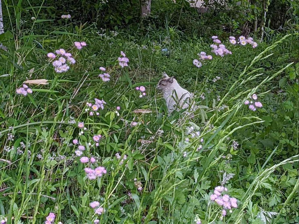朝 ニャンもいる日曜日のハルジオン咲く草原…?!😅