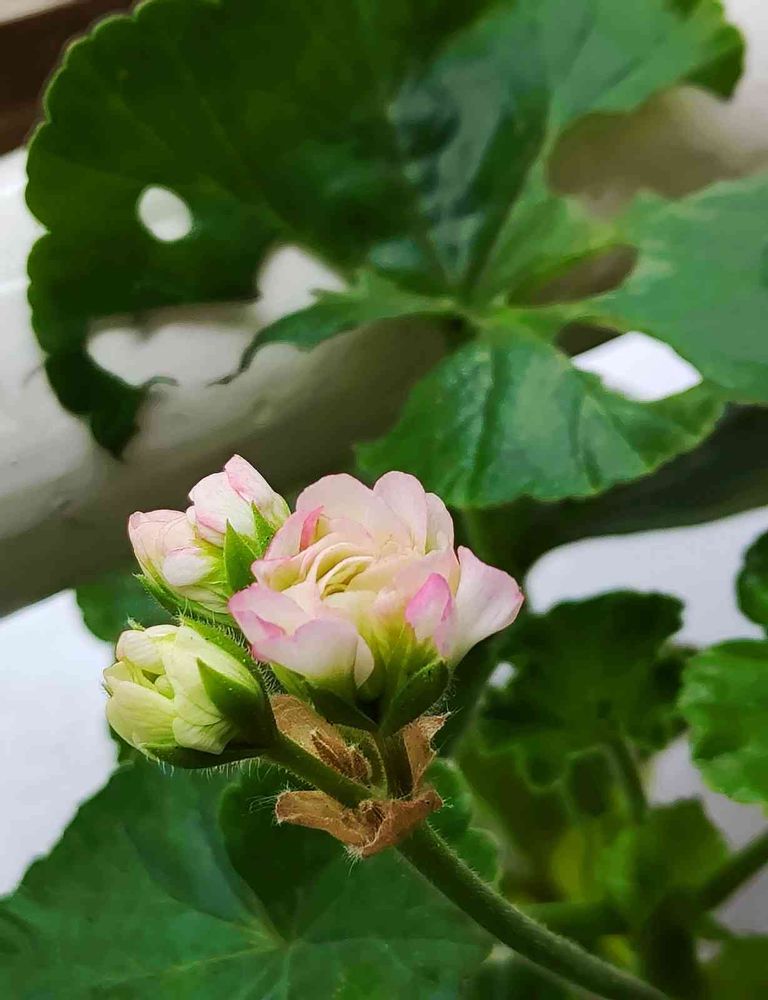 ゼラニウムのお花が開花したわね~かわいいね~💕ってふと見ると、葉っぱが穴だらけ😱ここまで食べますかというくらい