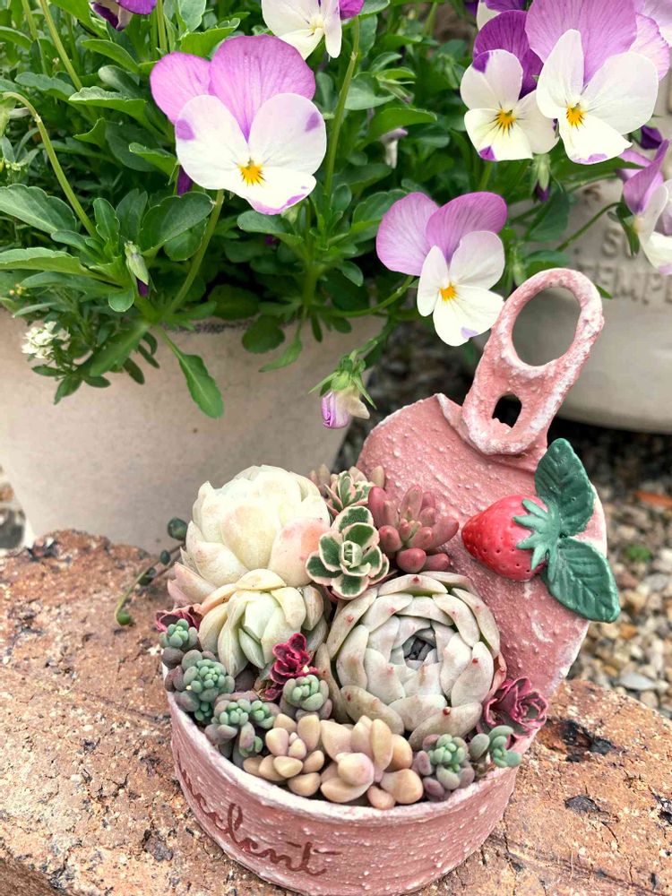 🍓のリメイク缶にピンクネーション多頭入りの多肉寄せ