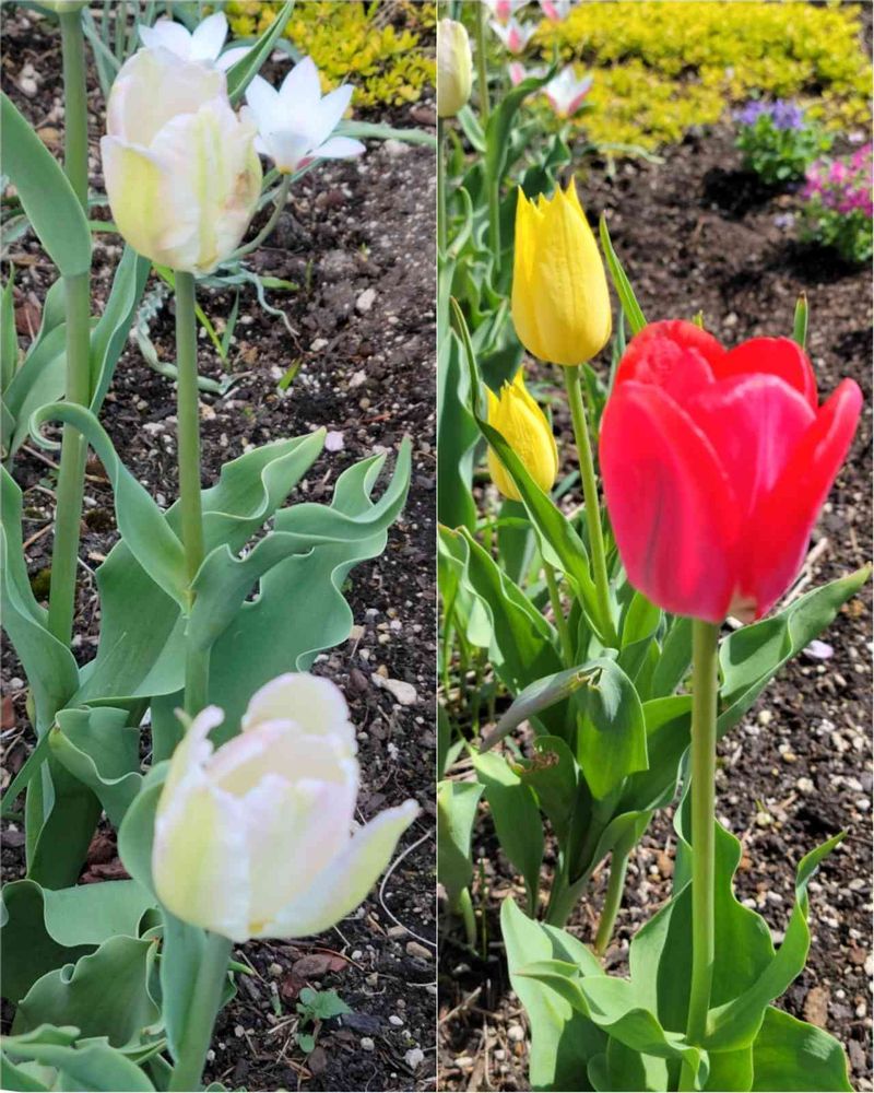先に原種のチューリップが咲いて、その後大きいチューリップたちが咲いてくれました🌷🌷
