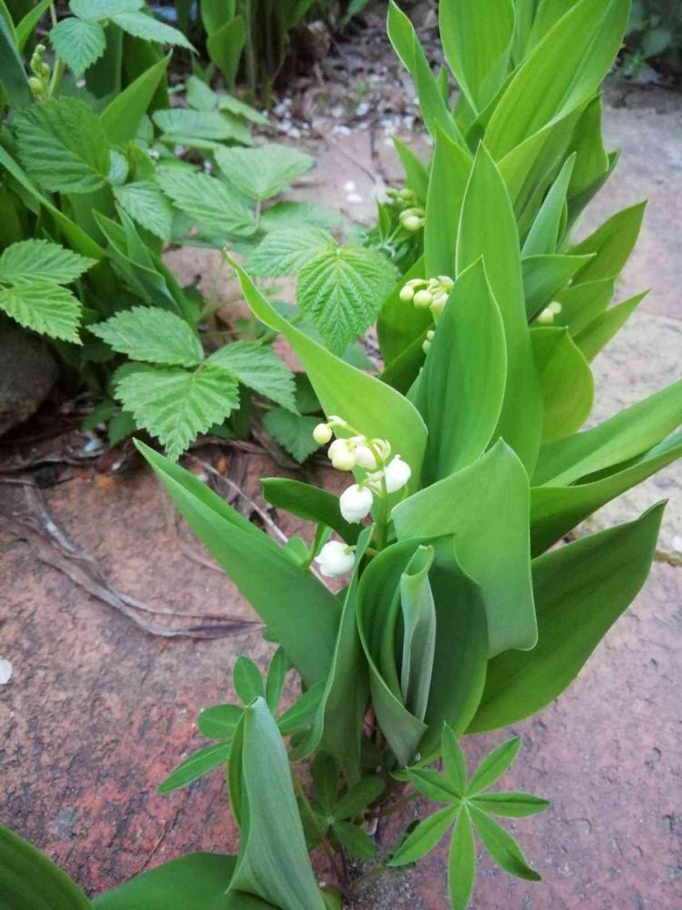敷いた煉瓦の隙間から出てきた💕スズランさんが咲き始めました。ど根性スズランです🤩