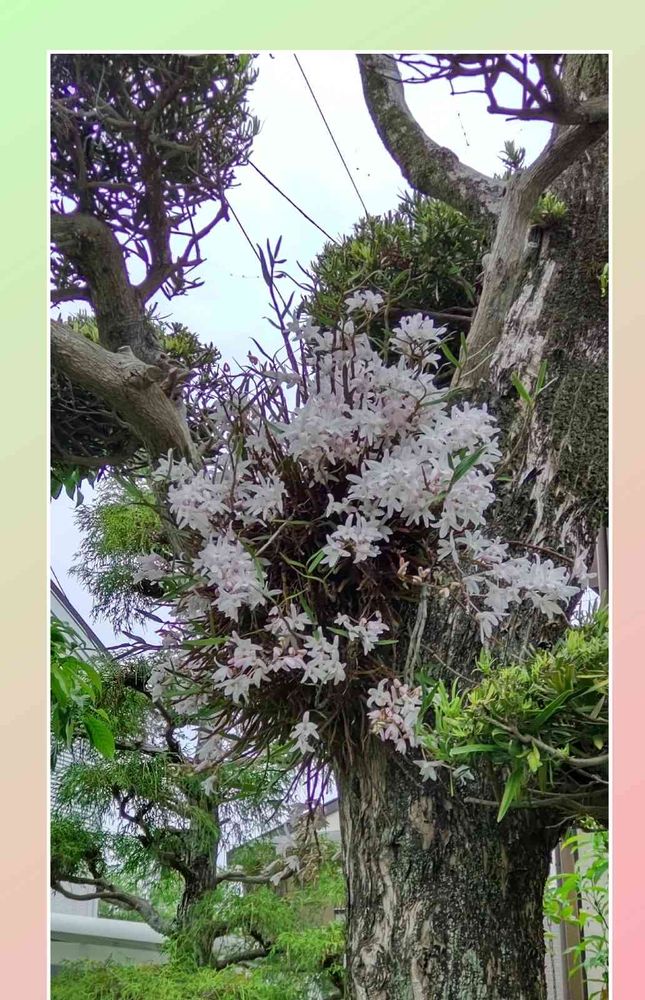 その まきの木に 亡き母が 30年前に 水苔を使って貼り付けたお花が この セッコクです🤗