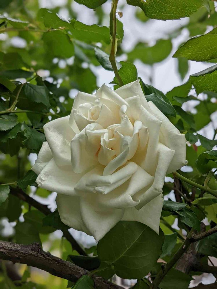 我が家のアーチに誘引した💚つるバラ・新雪🤍です