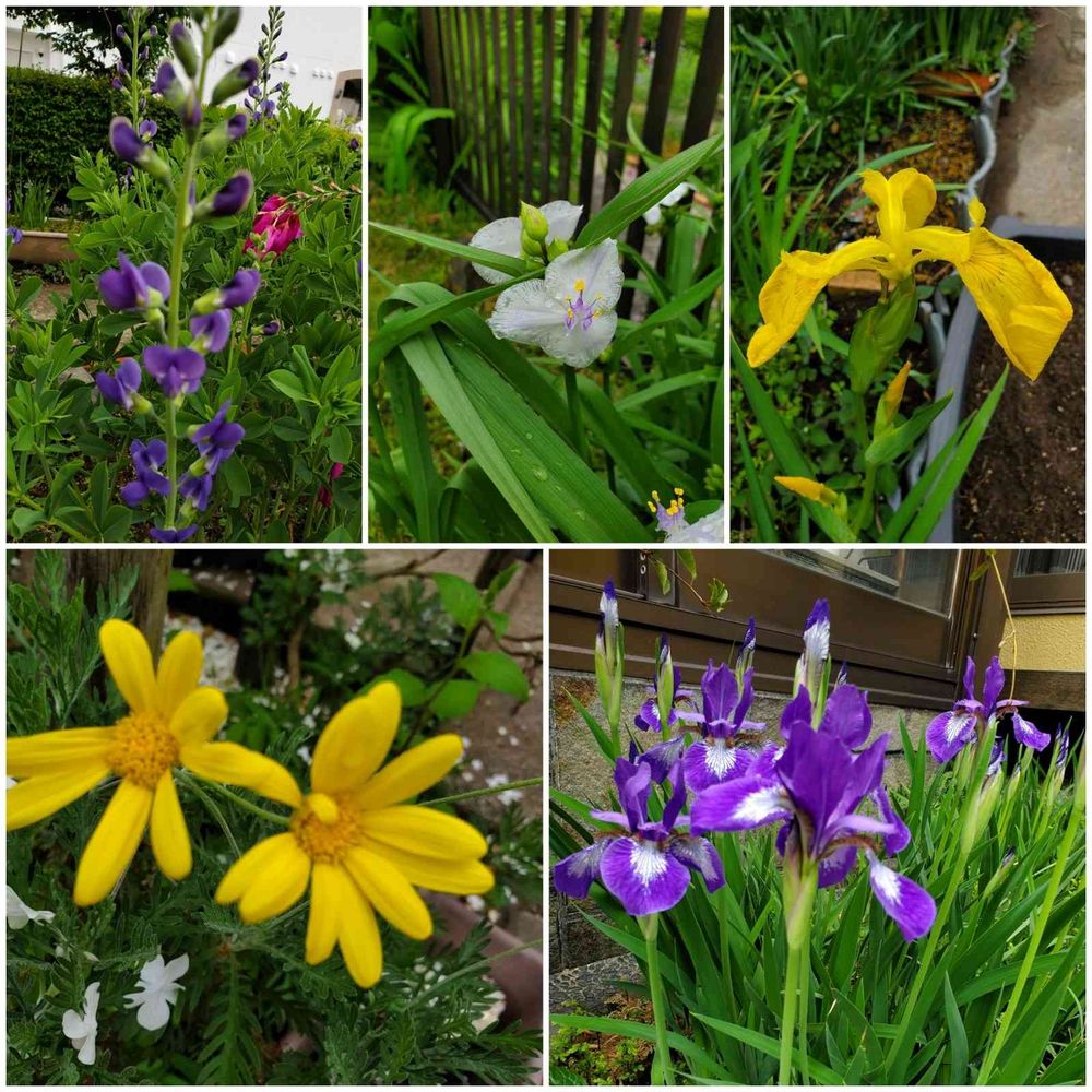 アヤメ,ムラサキツユクサ,ユリオプスデージーの投稿画像