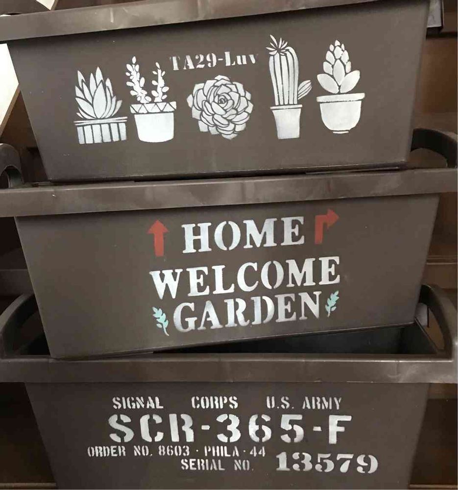 無機質なプラスチックのプランターもステンシルをすれば一気におしゃれになりますね(。☌ᴗ☌。)💕