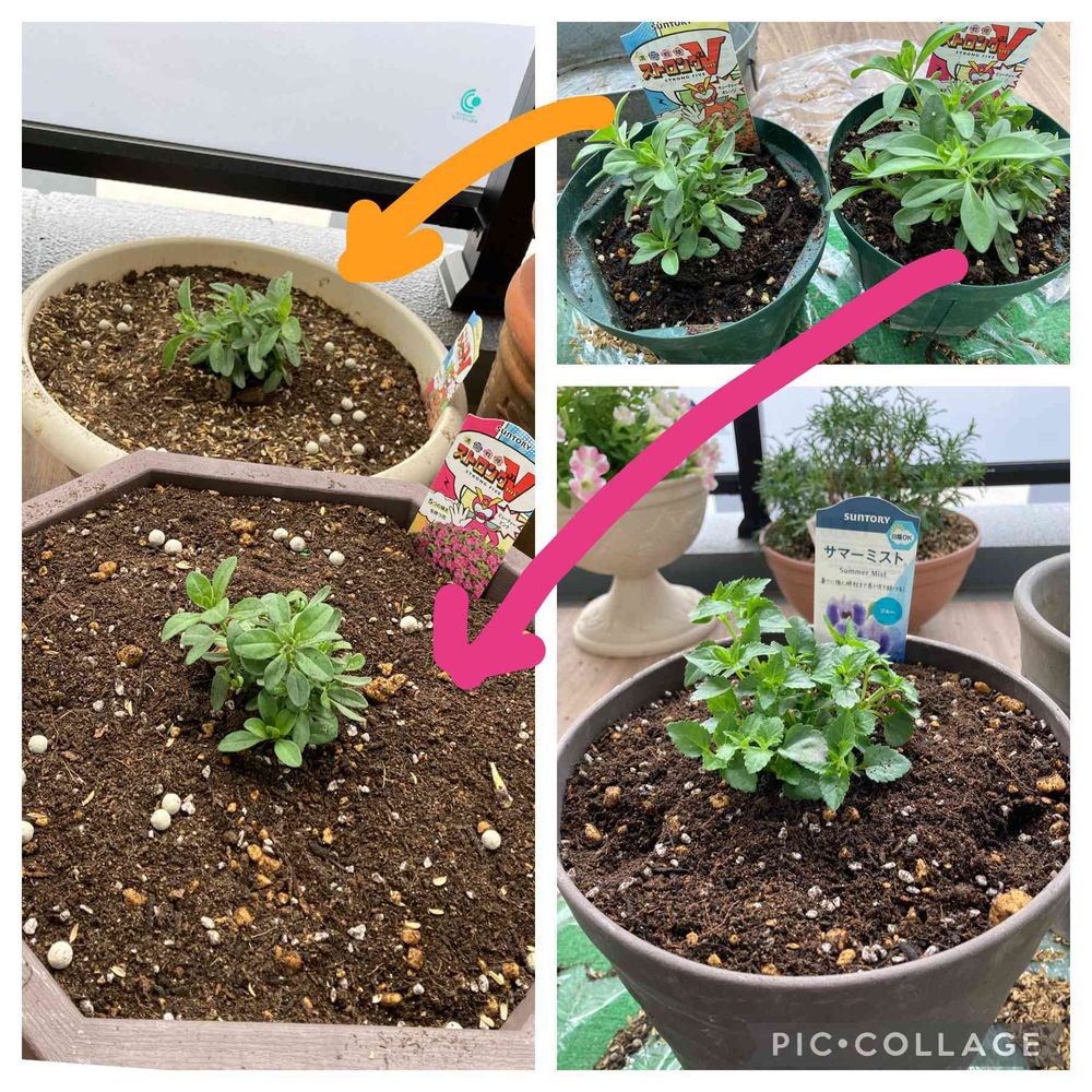 🏷サンフラアンバサダー2022の第3弾 サフィニアストロングVとサマーミストをやっと植え替えできました 前のウチから持ってきた鉢でバラバラですがホッとしました