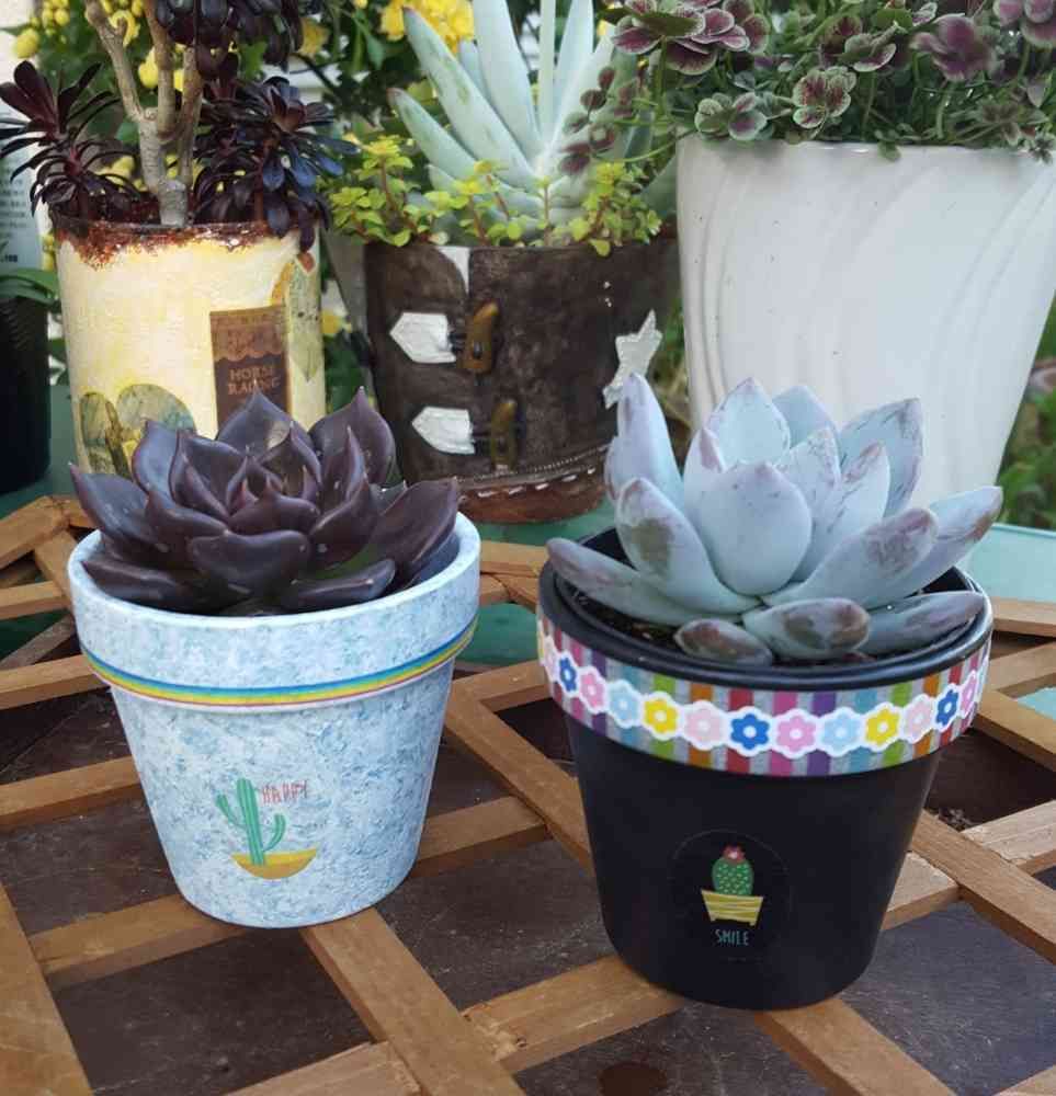 多肉さんの色にとても良いコーデネート👗の鉢で、多肉さん達も嬉しそう╰(*´︶`*)╯♡
