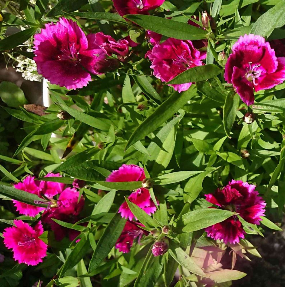 こぼれ種のダイアンサス。去年は赤の発色が強かった気がするけれど、今年の色も可愛い❤️