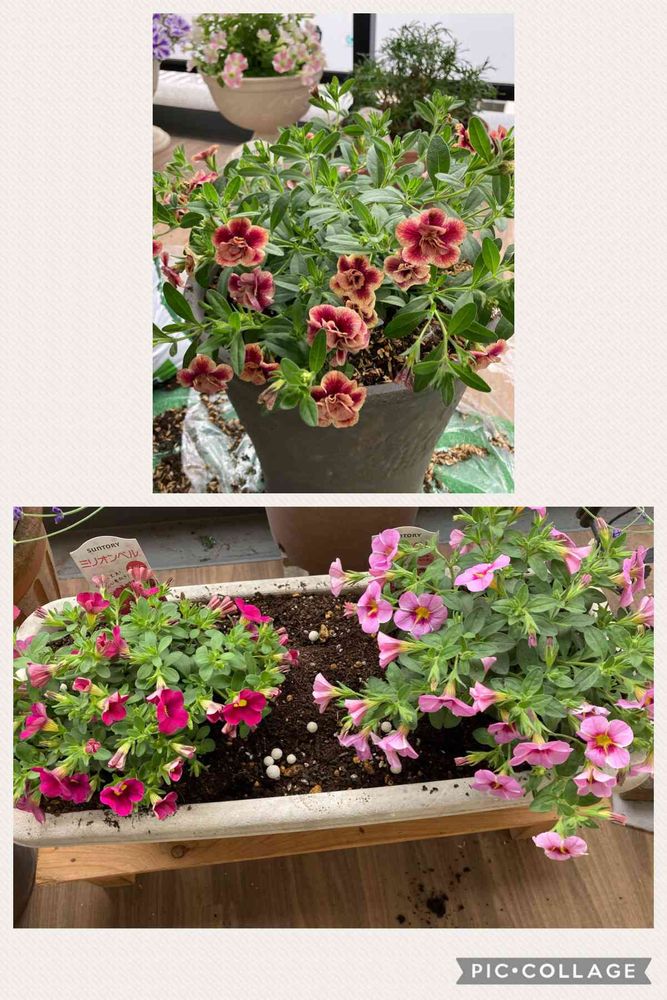 んさんのバルコニー/ベランダ,サントリーフラワーズ ミリオンベル プチホイップストロベリー,サントリーフラワーズ ミリオンベル チェリーピンクの投稿画像