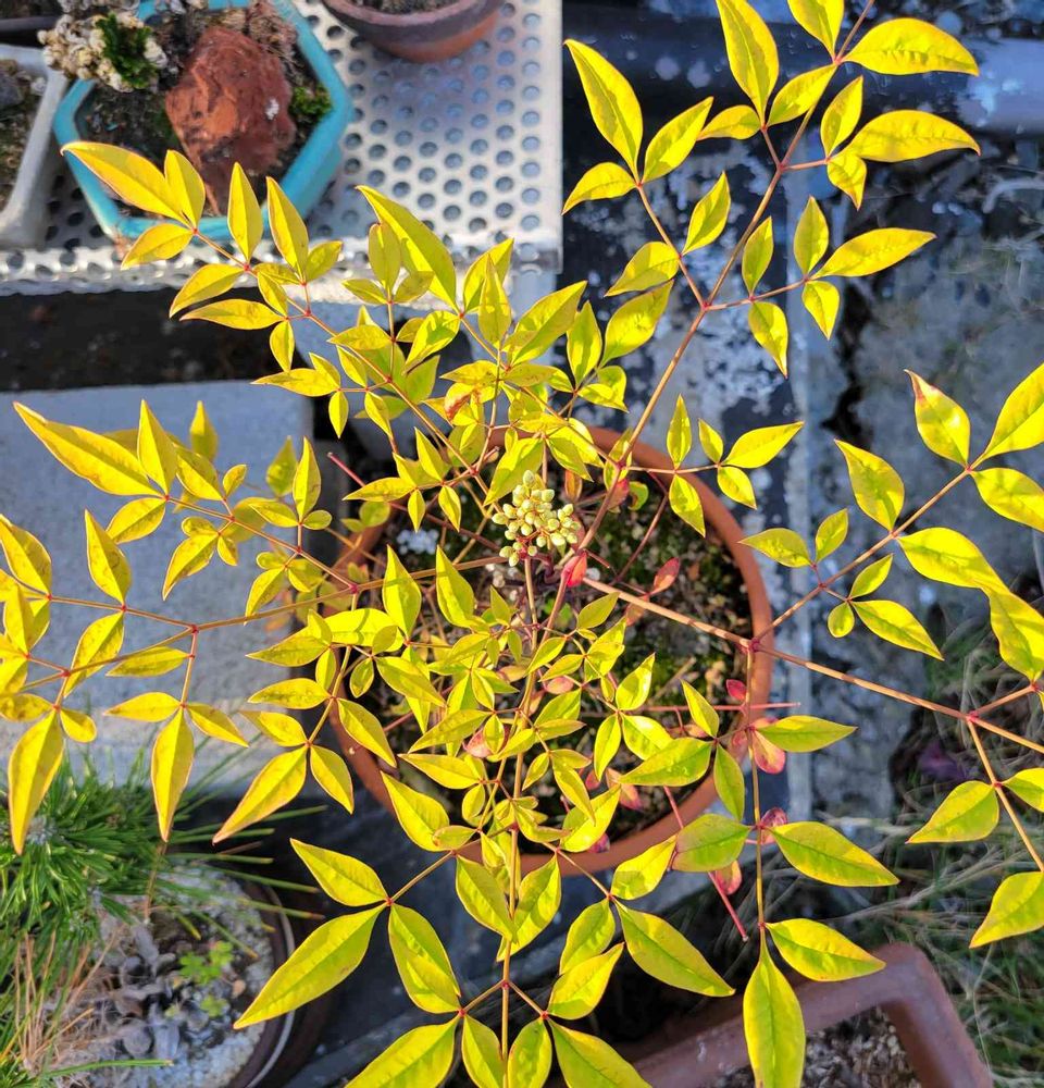 南天の葉っぱが🌿 西日に染まってゴールドに輝いていました✨😍キレイ