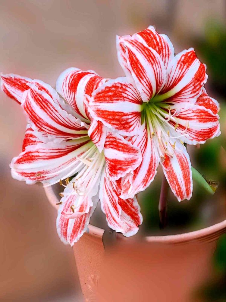 紅白の縞模様のお花が重なり合って可愛い姿ですねぇ🍀