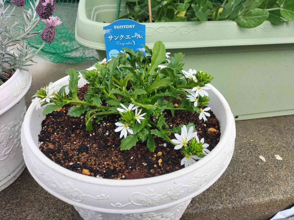 夏に向けてホワイトのサンクエールも植え付けました。夏には白が合いますよね~☺️