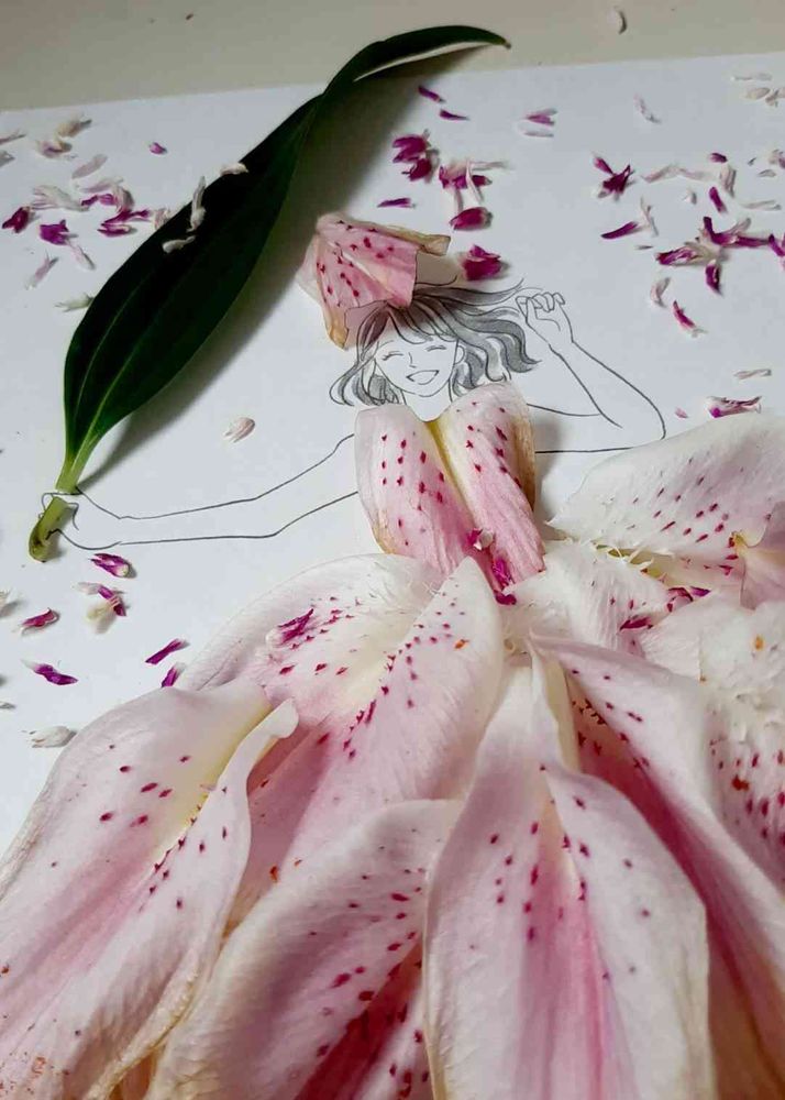 葉菜桜花子さんのイラストに花びら乗せて作りました♬