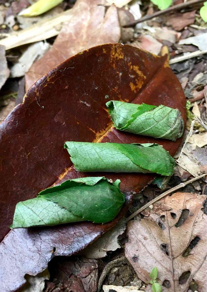 里山の雑木林を歩くと 足元の落ち葉🍂の上に 2㎝くらいの 葉っぱを丸めた様なものが落ちている事があります♪