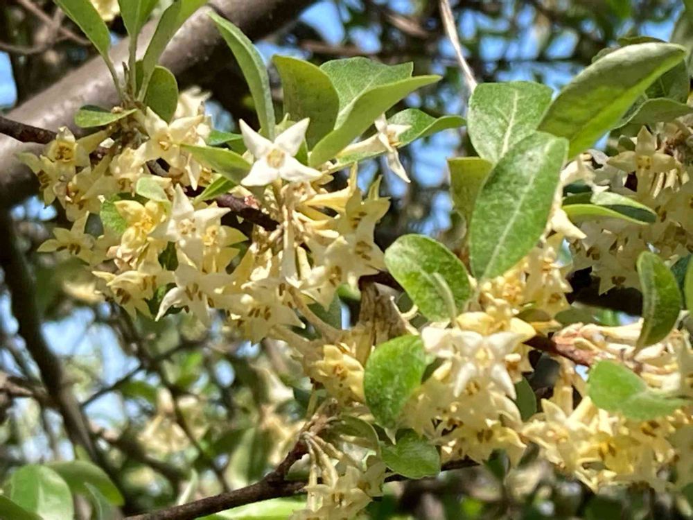 花が白から黄色に変わり、微香がしました。秋には、果実が赤く熟すとのこと。川の近くの道端に生えていました。