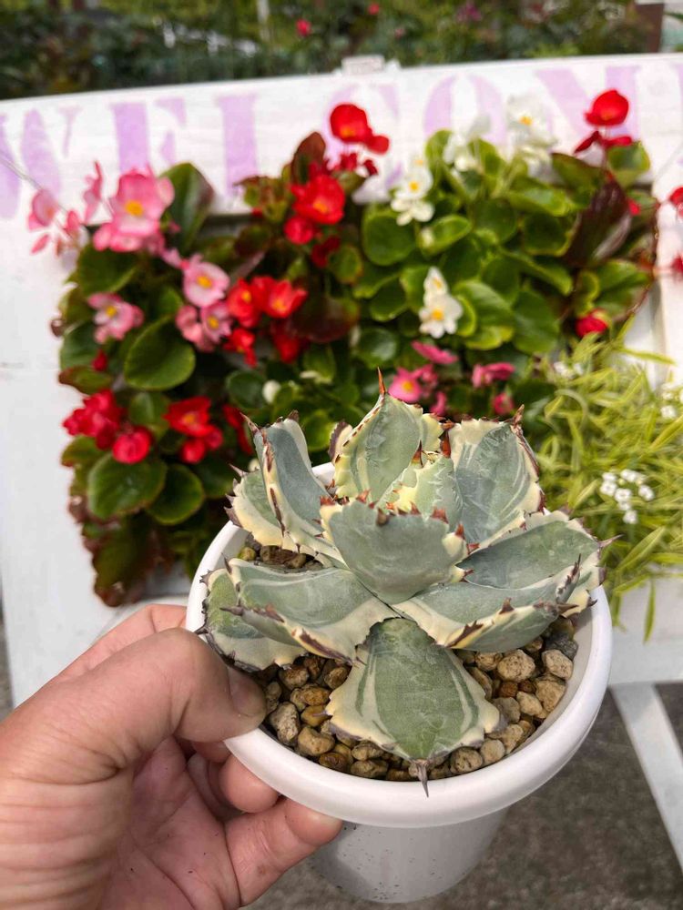 おはようございます😊アガベ兜蟹錦無事発根😊 鉢底から根も確認😊王妃雷神も元気に育ってます(*☻-☻*)