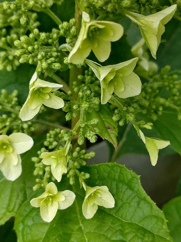 柏葉アジサイの蕾が 開き始めました〜💚🌿