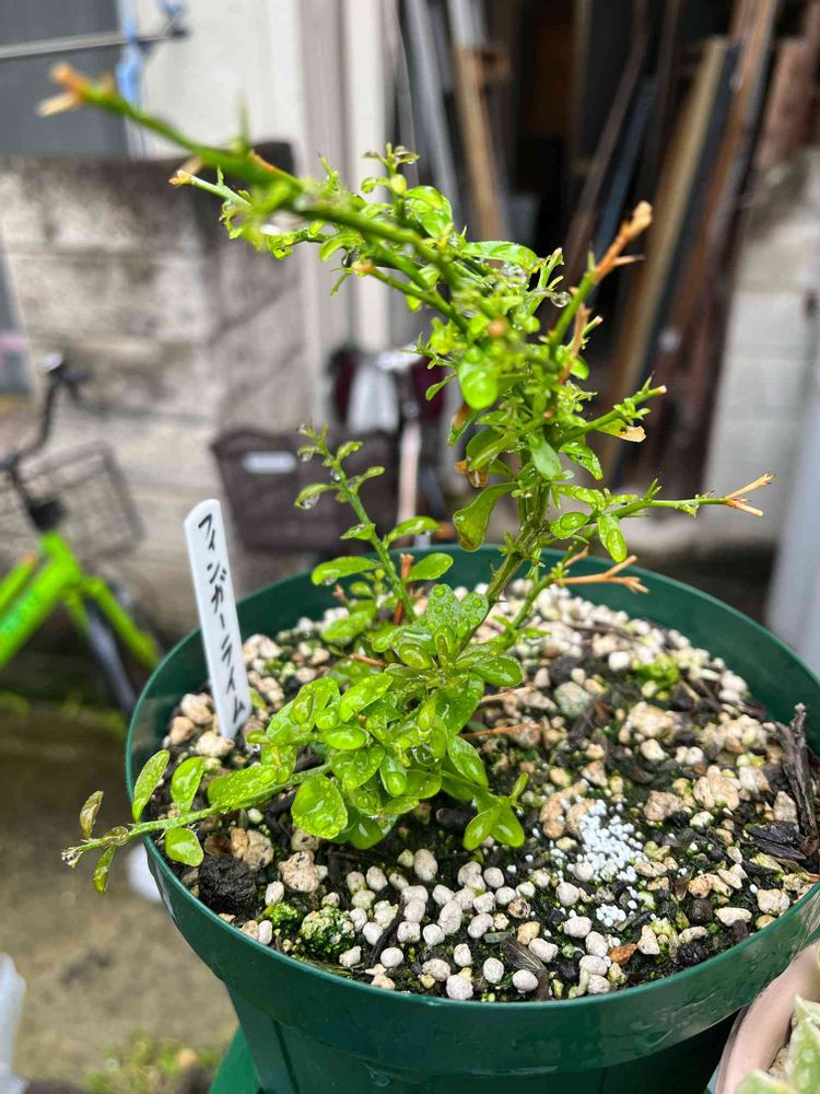 ここ1ヶ月で、新葉が出始めた「フィンガーライム」と言う名前で去年の秋にお迎えした子!