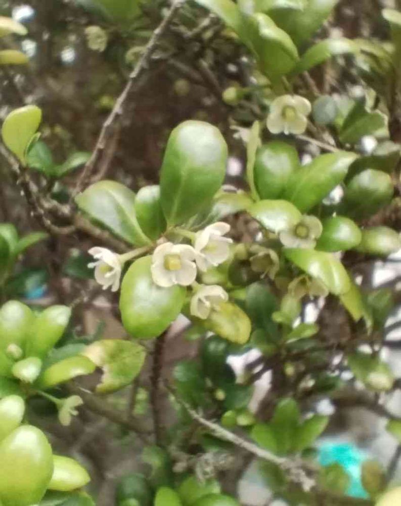 5月半ば蜂が飛び交ってたのでよく見ると豆つげに花が咲いていました