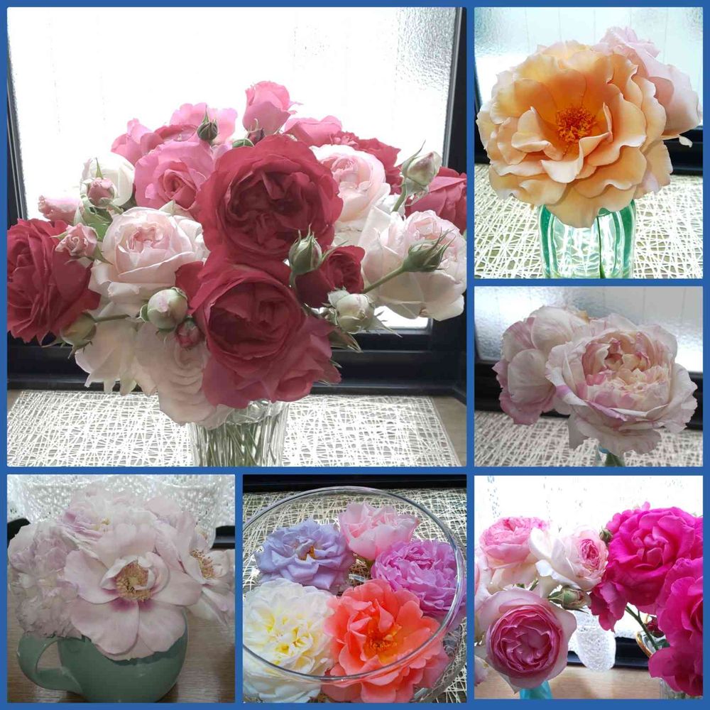 お店のバラと違って短い枝が多いのでなかなか格好つかないですが、我が家の花瓶がこんなに出動するのは娘のピアノの発表会以来😅