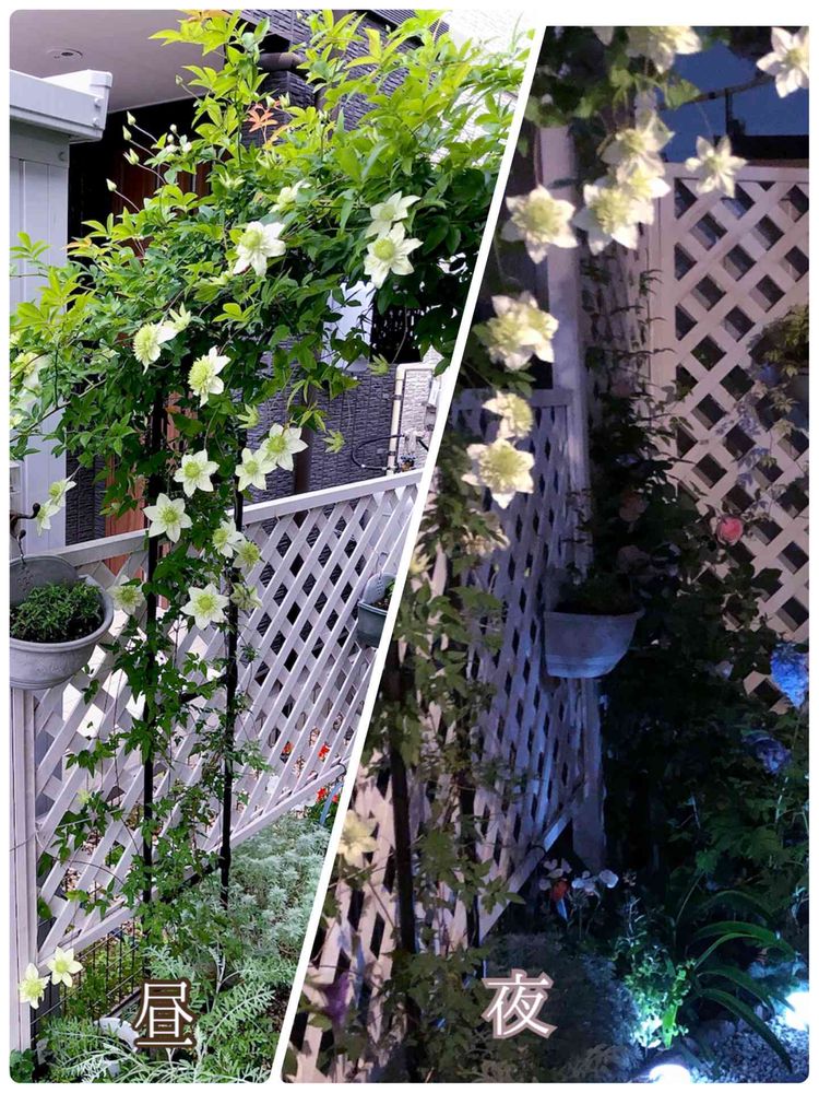 クレマチス白万重♡ 昼も、夜もどっちも素敵✨です♪