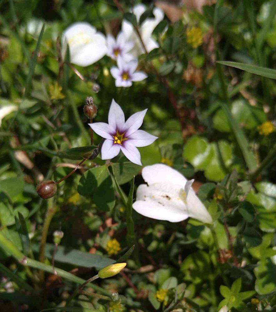ニワゼキショウとシロバナサギゴケです🌸🌱。サギゴケって結構大きいですよね(個人的感覚ですが…)
