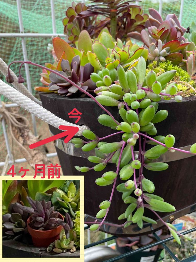 左下写真のが巨峰からマスカットになり🤣育ちの早さにビックリ! 花が咲きそう♡グリーンネックレス亜種かなぁ?