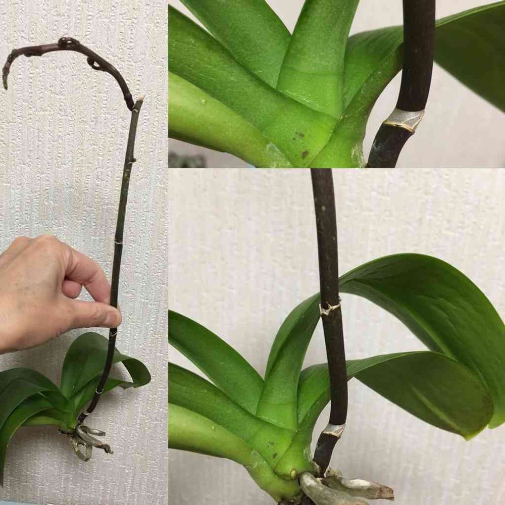 まだ根がありますね。新しいミズゴケで根を包み、ウッドチップでできたポットや素焼きの鉢に入れるのが良いようです。このとき根の通気性を確保するのが目的なので、ミズゴケと根を固定するものは網、ストッキングなどでいいそうです。植え替え後は特に株が弱りますので、1週間程度は27℃程度の日陰に置くと良いと書いて有りましたよ。