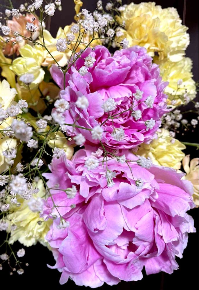 10日ほど経ちますが、まだきれいに咲いているカーネーションとシャクヤクをアレンジしてみました😊