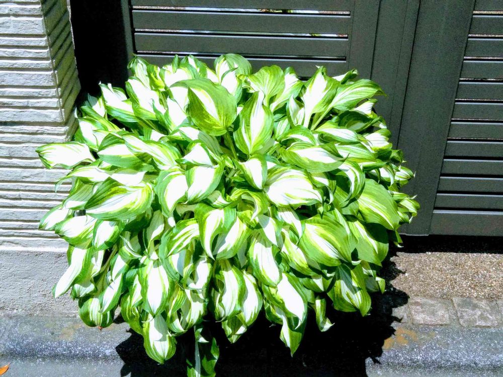 出勤途中、通り道のお宅の玄関前に、大きな鉢に入ったギボウシがありました。