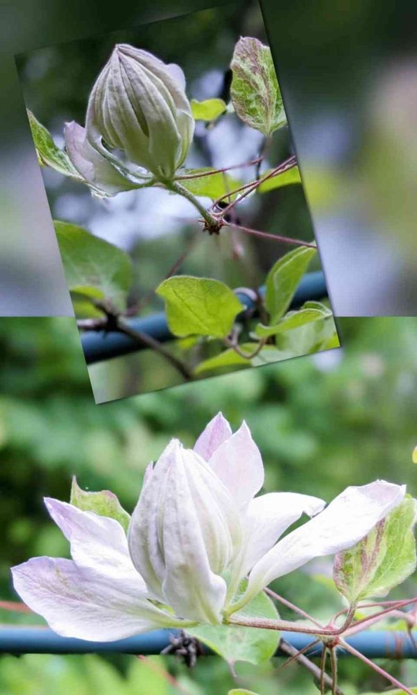 アーチのクレマチス…一昨日の蕾が昨日開きかけていました