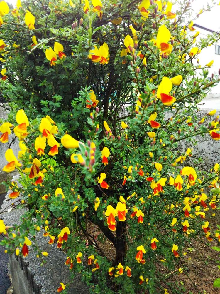目立ってくれます😃「エニシダ」花は赤色・黄色、緑の葉👀🤔信号機🚥みたいです。