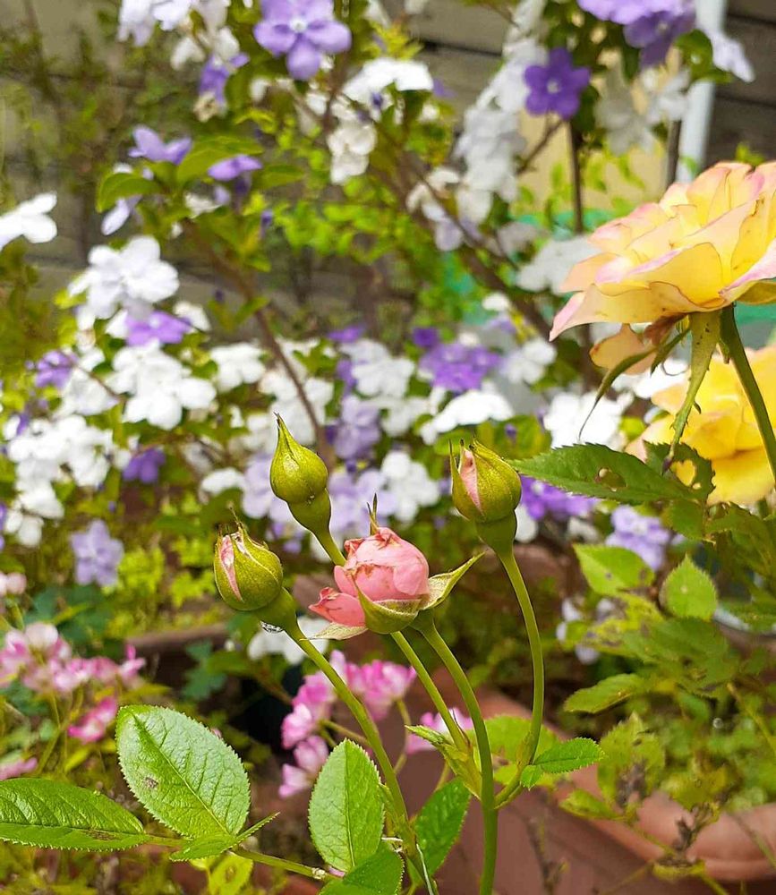 我が家のミニバラコーナーが賑やかになってきました🌸
