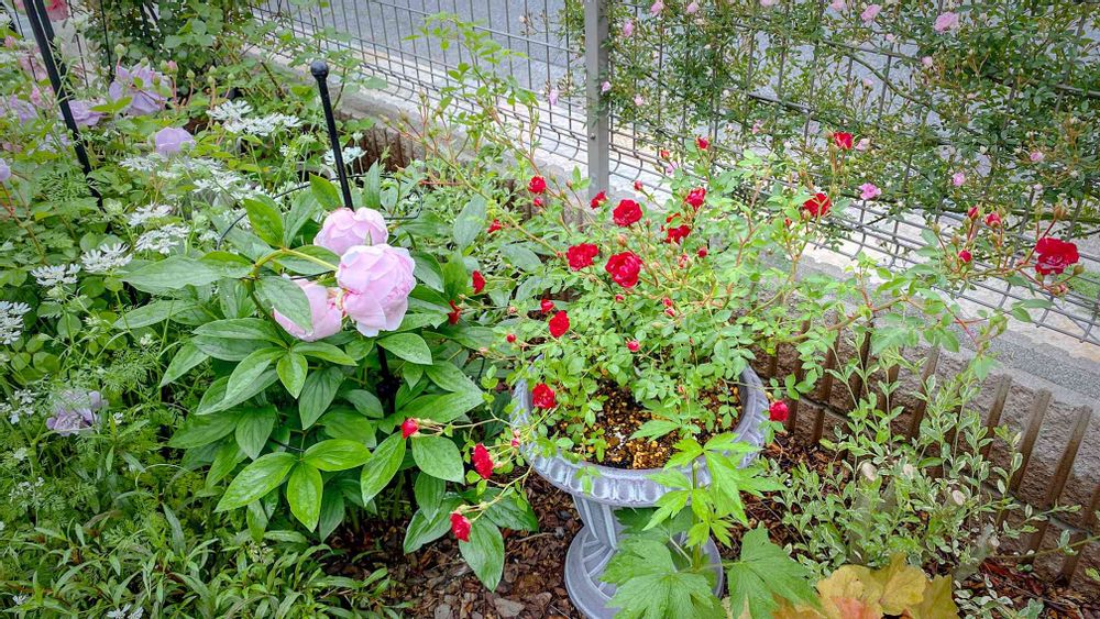 ミニバラ レッドキャスケード,芍薬 サラベルナール,鉢植えの投稿画像