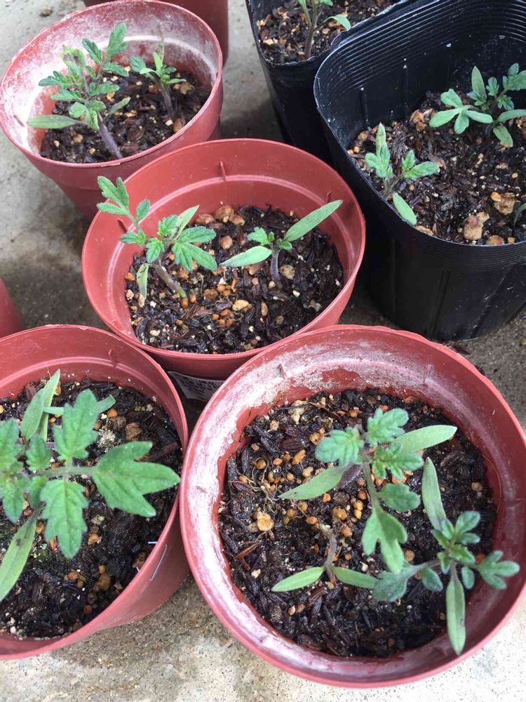さん6年すごい! 毎年 苗からです! 今年も2本 植えた後 ハーブ殖えたなかからトマトの芽が出て大きくなりつつ,,,,, 昨年トマト育てたプランターにトマトの芽が出て ました!