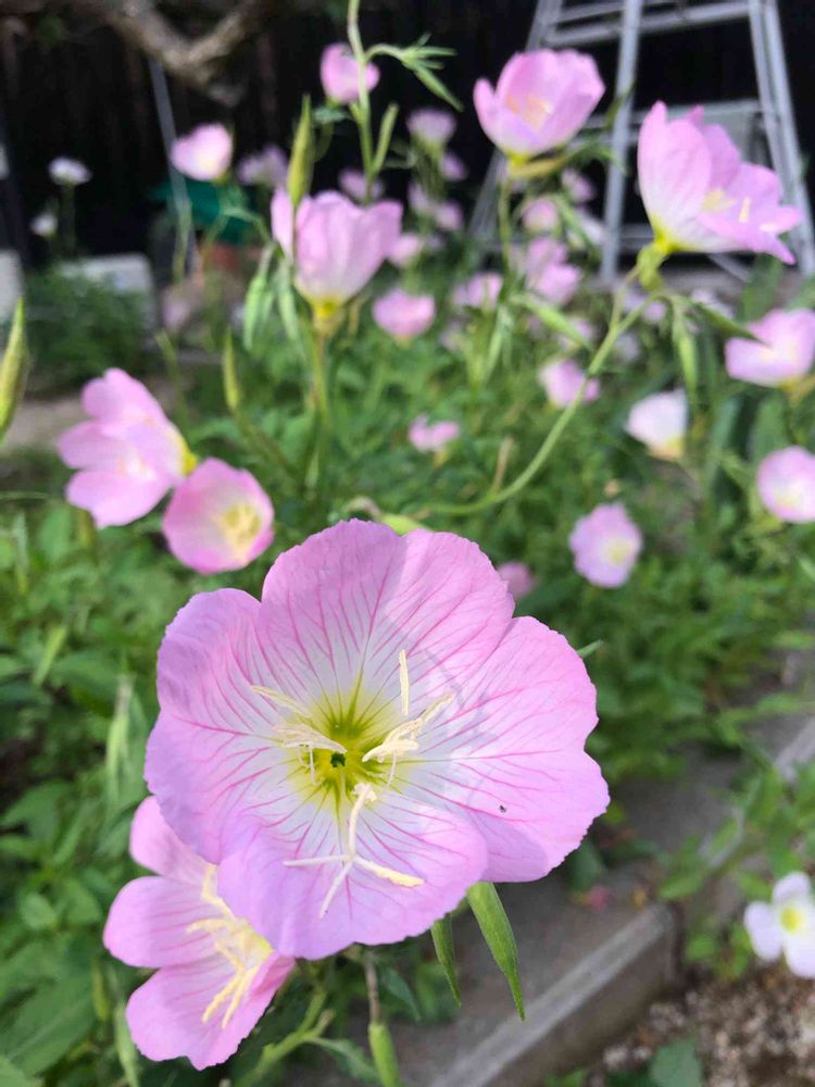 小さな庭,桃色昼咲き月見草、,地植えの投稿画像