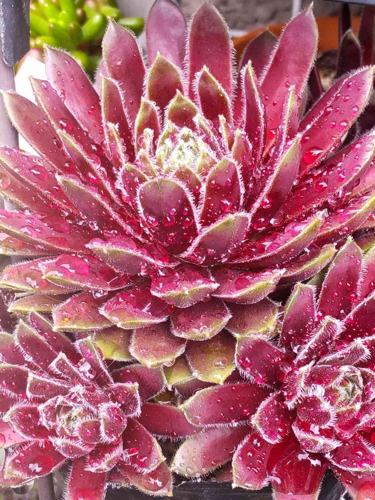 雨露を纏った センペルビウム・テストさん😻💗🤍💛