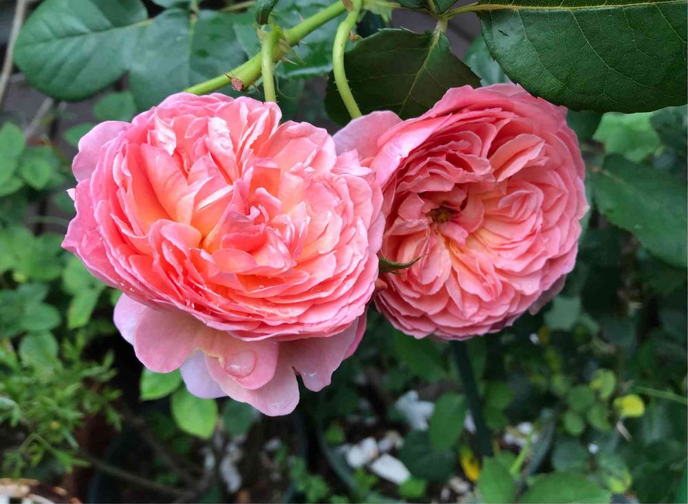 今日のバラ2種は、姉妹?おやこ?親戚?ですね