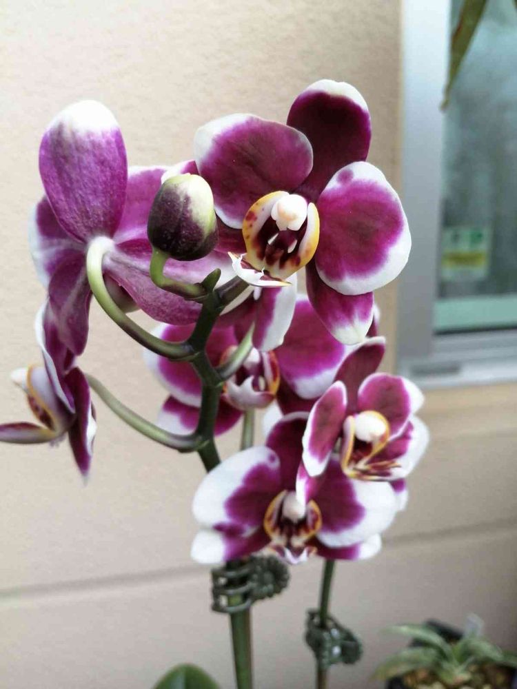 で、毛色のかわったwこちらのコチョウランをお迎え。花弁に紫の染み付き😂