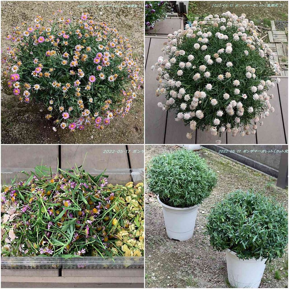 ボンザマーガレット、花に艶が見えにくくなったので、花柄摘みを全体に実施しました。蕾は残しています。6月には、もう少し、切らねばならないのでしょうか( ノД`)シクシク…