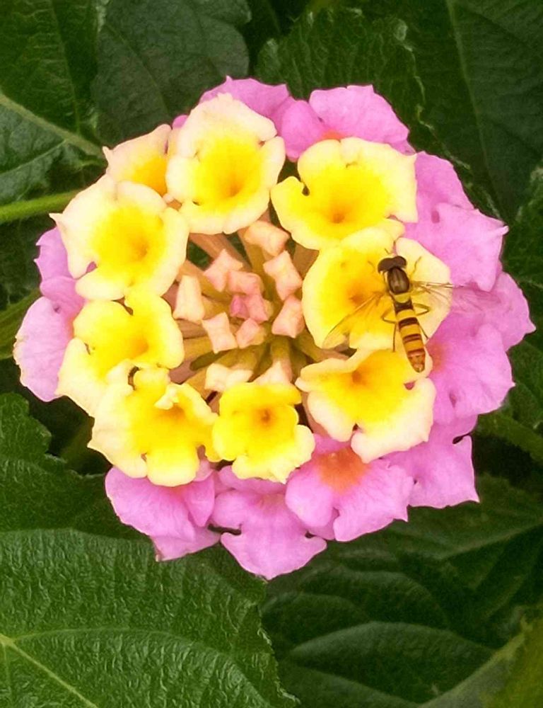 知人の、近くの畑に咲いているランタナの花とミナミヒメヒラタアブ☺️