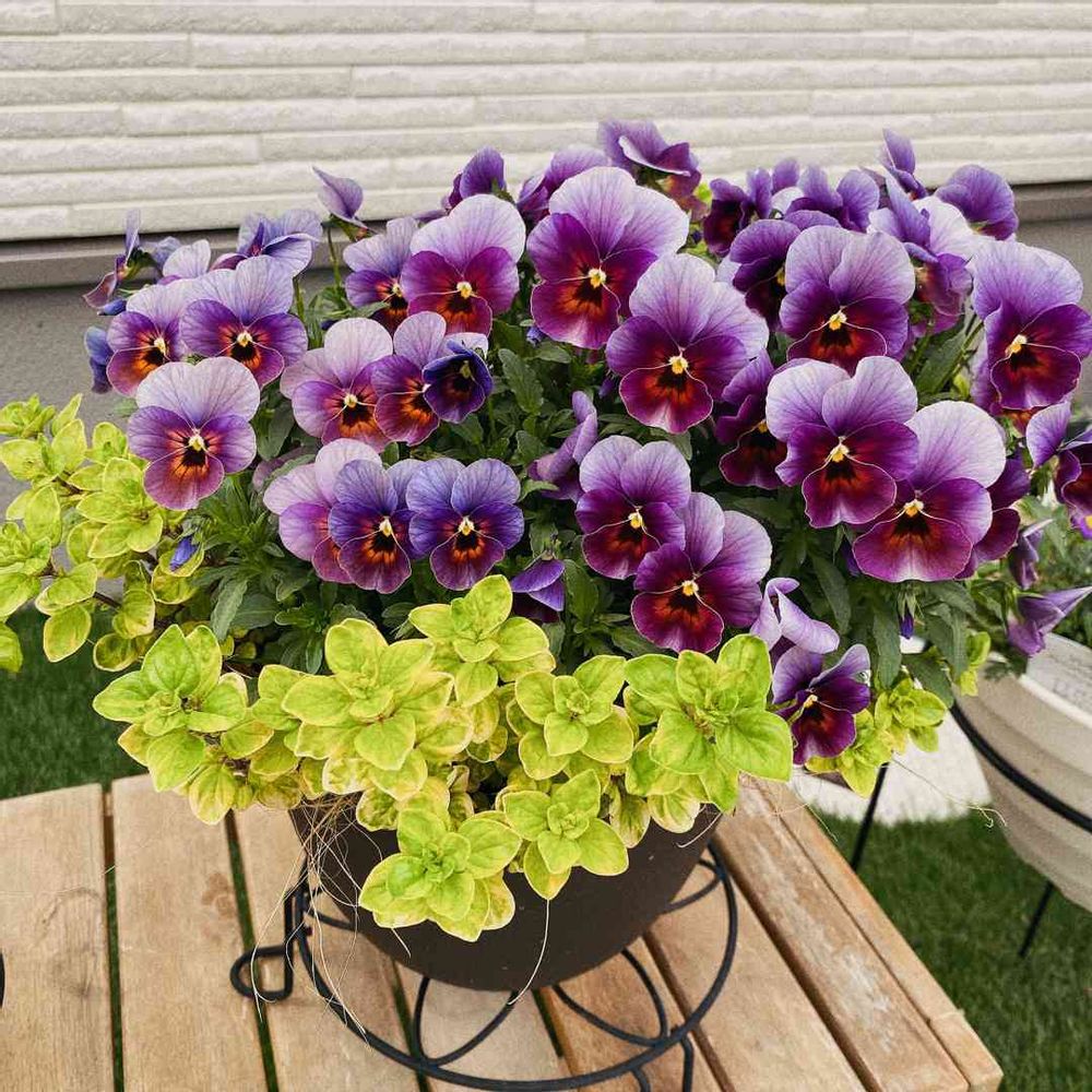 冬の寄せ植えだけど色のコントラストがめちゃめちゃ可愛い