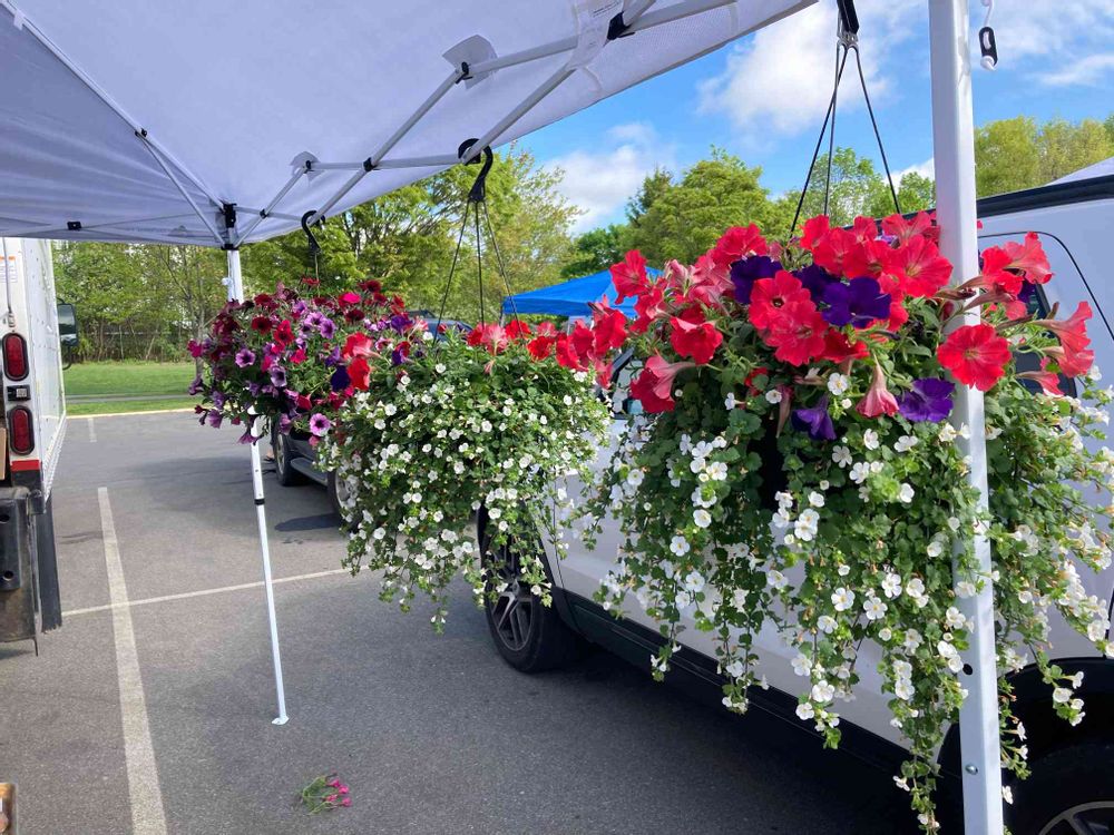 土曜日に出かけたファーマーズマーケットで見つけたフラワーバスケット。手前の色合いは、赤青白で、アメリカの祝日にも合うかも🇺🇸