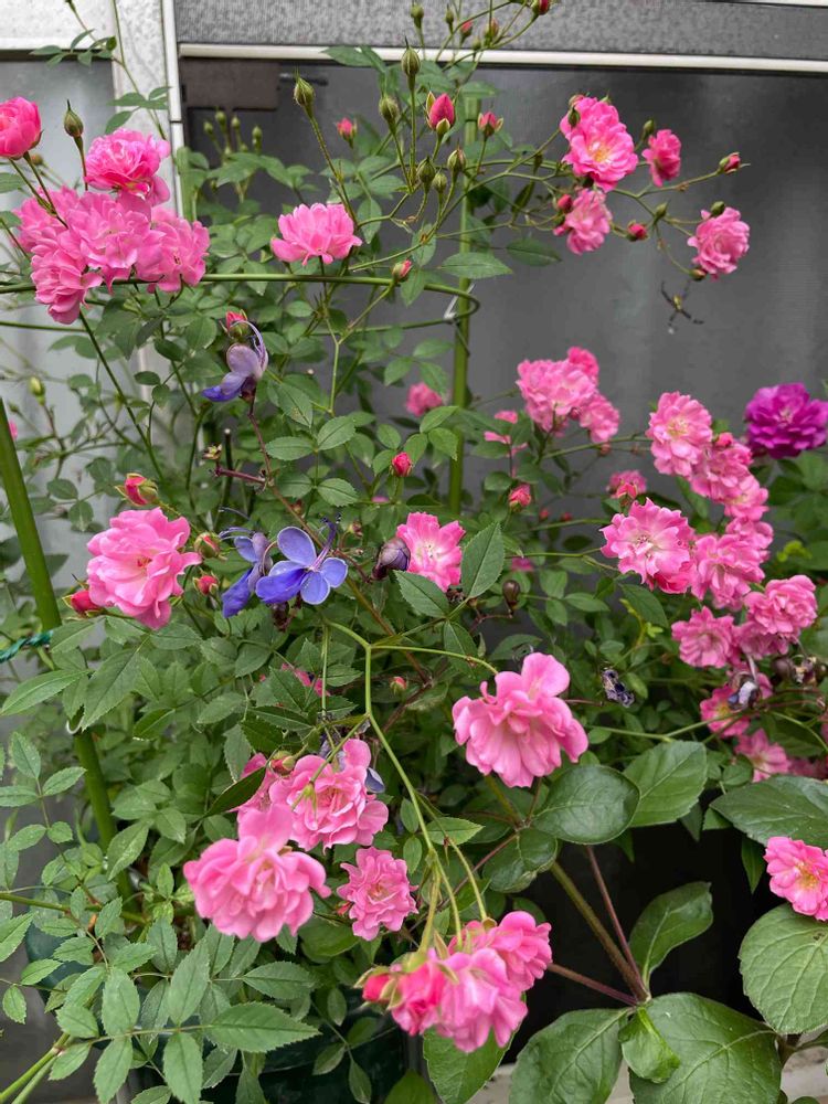 クレロデンドルム💜さん💜咲いてきましたね🦋ミニバラのあいだを飛んでるみたいで素敵😍 今日はミニバラシリーズですね!そっか。。6号鉢で管理したらいいのですね_φ(・_・ スイートチャリオット💖素敵だなぁ。。香りも良いのですよね??ほし〜🌟😆