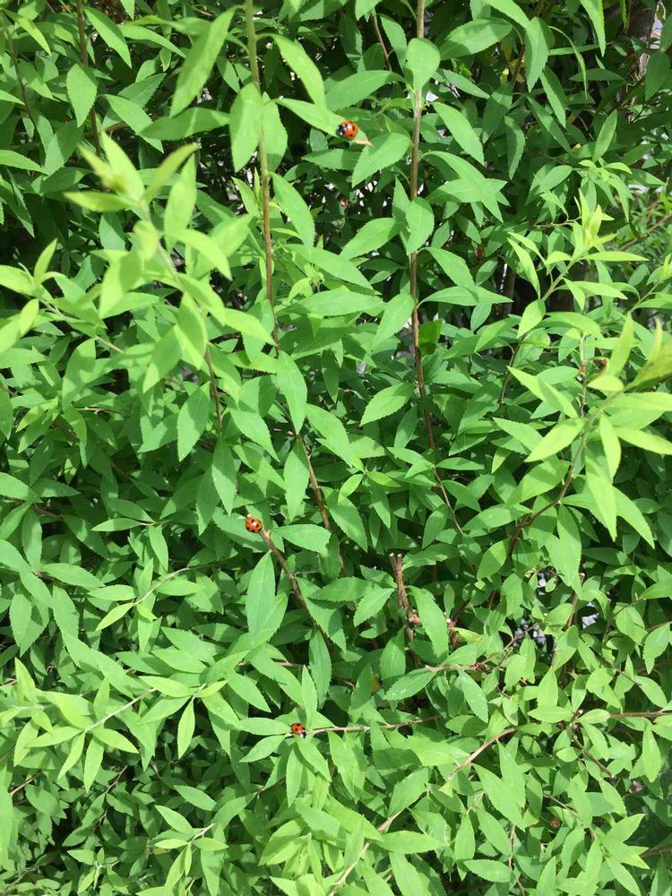 雪柳にてんとう虫が大量〜〜!アブラ虫に食しに来ています!ざっと数えたら…20匹以上…😱💦まぁ、食べちゃって〜〜!