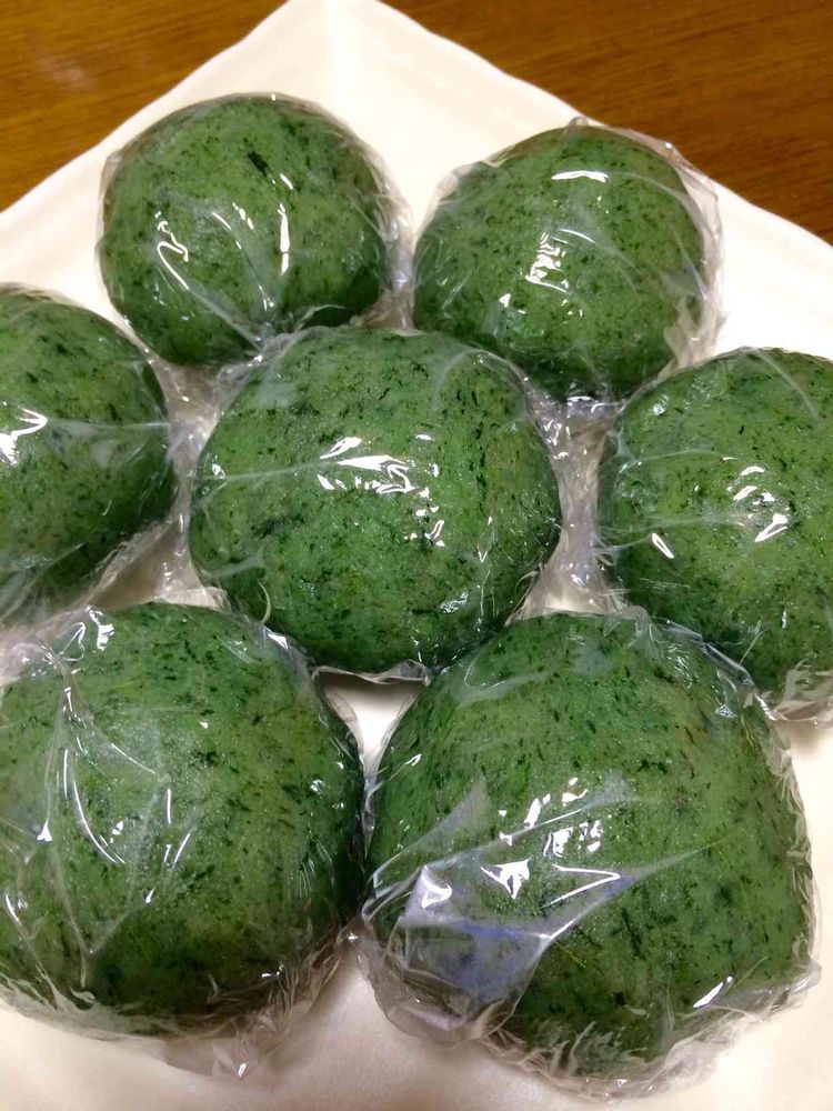 あーでもないこーでもないと試行錯誤の末に、よもぎの美しい色と香りにフォローされて、表面のゴツゴツはラップでカバーしてもらいました💦