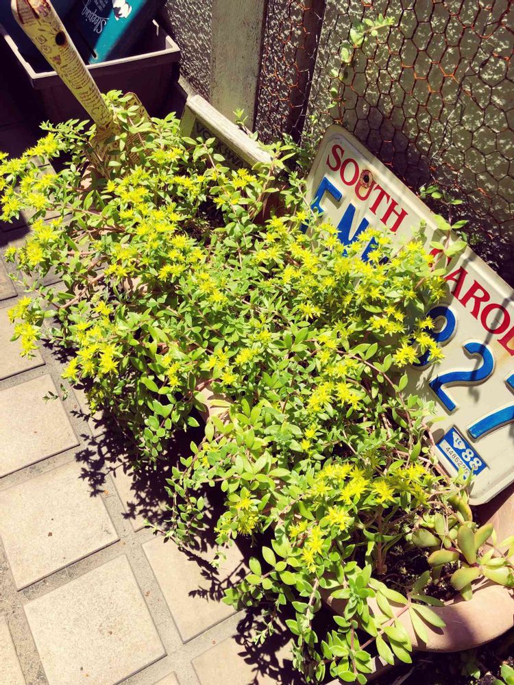 堤防で拾ってきた多肉ちゃんですが、黄色い花が綺麗です😍