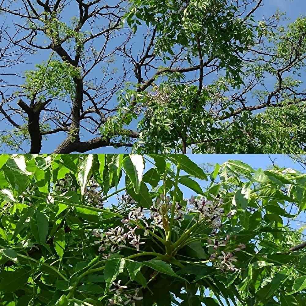 庭に欲しい木ですが、大木になるので残念です。夏は日陰を作ってくれますし、冬は落葉し日差しを妨げないし、花は薄紫の小花が沢山集まって上品です。白花栴檀も有りますね。
