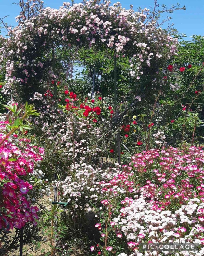 さん、こんばんは😃🌃はい!毎年咲いてくれる可愛い💠バラ🌹です。ハ-トのバラの、根元に、椅子を、置いてます。近くの、保育園児童が、遊びに、来てハ-トから顔を、出して、パチリ写メ📷💌してもらってます😊。夢乙女は、💗の、小さな薔薇ですが、びっしり咲いたら、綺麗ですね✨。白い夢乙女も、側に、有ります🙆ひなあられ薔薇🌹も、賑やかに、咲いてくれ、(*≧з≦)可愛いですよ🎵。まだ暫くは、楽しめそうです🙆。有り難う( ´∀`)ございました。
